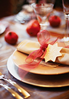 plates, silverware, coffee cups and champagne flutes for toasting,